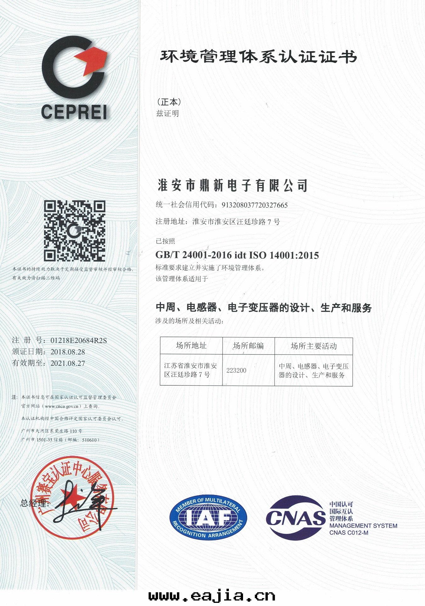 环(huán)境管理(lǐ)體(tǐ)系(xì)認證證書(shū)