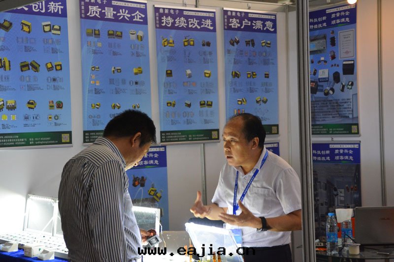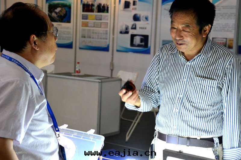 公(gōng)司總(zǒng)經(jīng)理(lǐ)在(zài)展台(tái)前(qián)與(yǔ)參觀者(zhě)在(zài)交流産品
